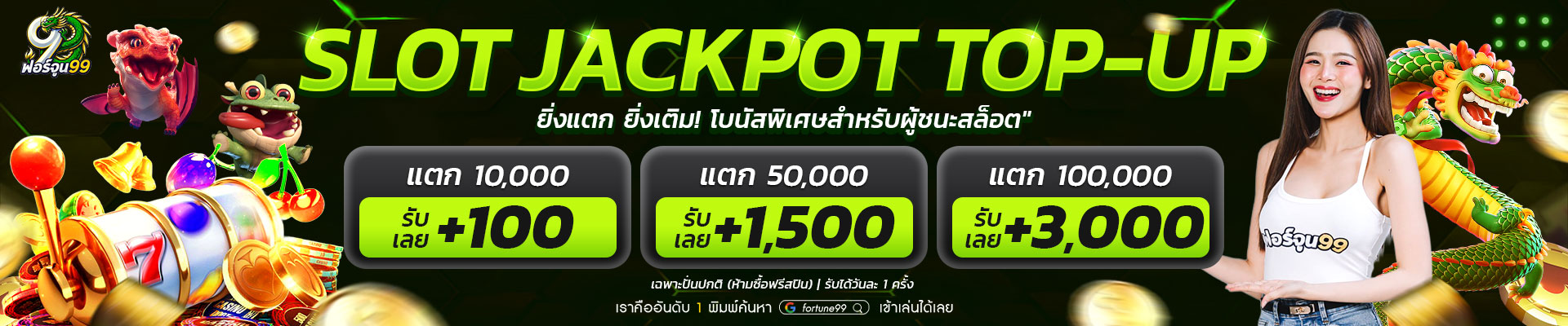 ที่ Fortune99 เรามีทีมงานคอยให้คำปรึกษาและช่วยเหลือตลอด 24 ชั่วโมง หากมีข้อสงสัยหรือต้องการความช่วยเหลือ สามารถติดต่อผ่านช่องทาง Live Chat หรือ Line Official ได้ทันที นอกจากนี้ยังมีโปรโมชั่นพิเศษมากมายสำหรับสมาชิกใหม่ ทั้งโบนัสต้อนรับ เครดิตฟรี และสิทธิพิเศษอื่นๆ อีกมากมาย มาร่วมสนุกและลุ้นรับรางวัลใหญ่ไปด้วยกันที่ Fortune99