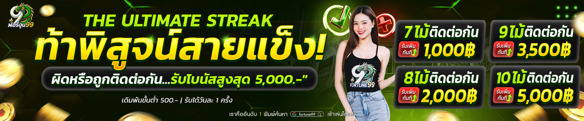 ทุกเกมบน Fortune99 รองรับการเล่นผ่านมือถือได้อย่างลื่นไหล พร้อมระบบฝาก-ถอนอัตโนมัติที่รวดเร็ว และมีโปรโมชั่นพิเศษมากมายให้เลือกรับ เพื่อเพิ่มโอกาสในการทำกำไร ไม่ว่าคุณจะชอบเกมแบบไหน Fortune99 ก็มีตัวเลือกที่เหมาะสมพร้อมอัตราการจ่ายเงินรางวัลที่คุ้มค่าให้เลือกเล่นอย่างแน่นอน